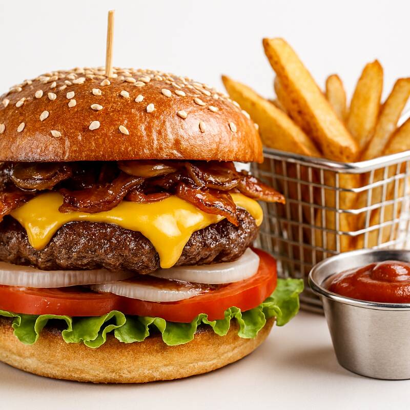 Hamburguesa Sencilla (incluye Papas Caseras)