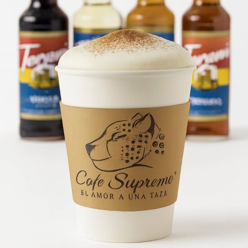 Capuccino con espresso doble carga saborizado a tu eleccion con leche espumosa