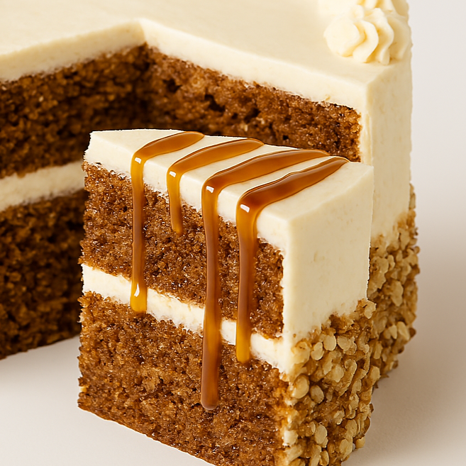Pastel con glaseado de philadelfia y trozos de nuez y zanahoria rallada