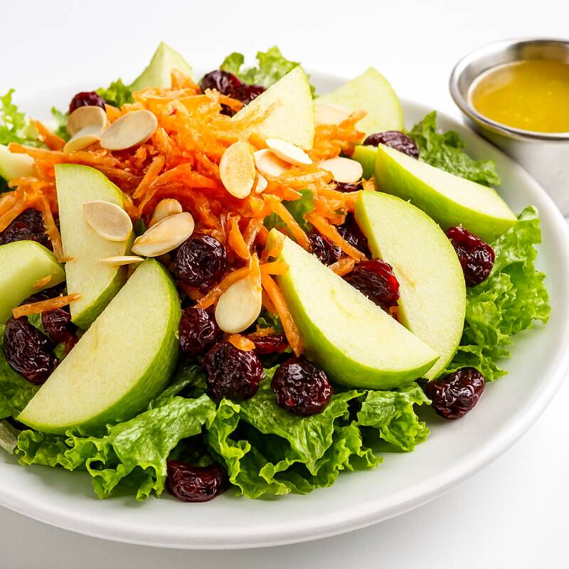 manzana, nuez, almendras, arándanos y zanahoria rallada acompañado de aderezo chabacano
