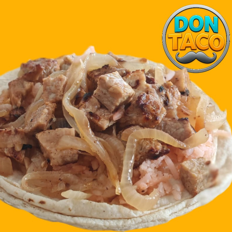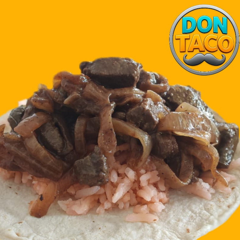 CARNE SAZONADA ESTILO PASTOR, JUGOSA Y LLENA DE SABOR. SERVIDO SOBRE DELICIOSO ARROZ ROJO