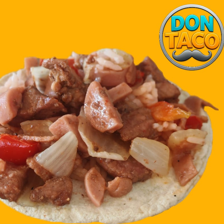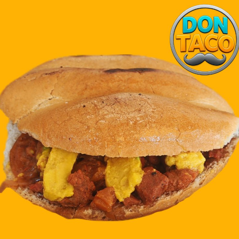 TELERA DORADITA UNTADA CON FRIJOLES RELLENA DE CARNE ESTILO PASTOR CON EL SAZON DE LA CASA