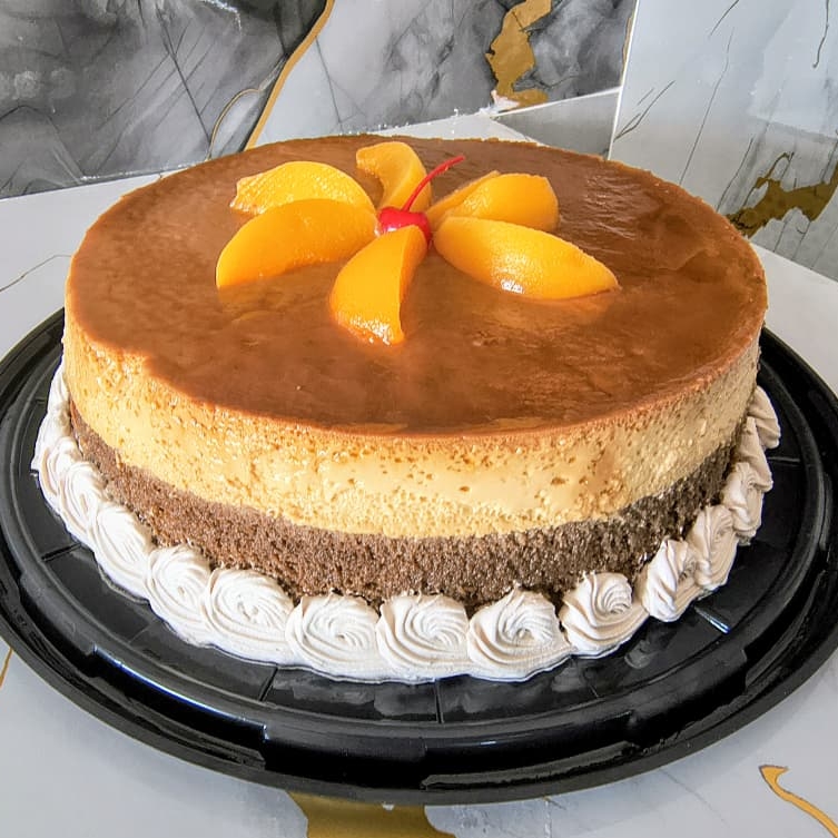 Pastel cocinado de chocolate y flan napolitano