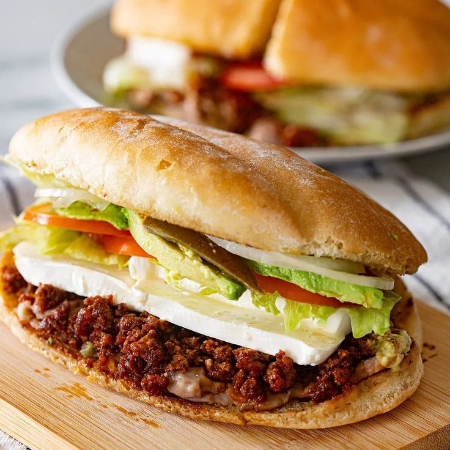Preparada con carne de res, jamón, tosino,quesillo, queso amarillo, tomate, cebolla, Lechug, pan suave, salsa Tártara casera.