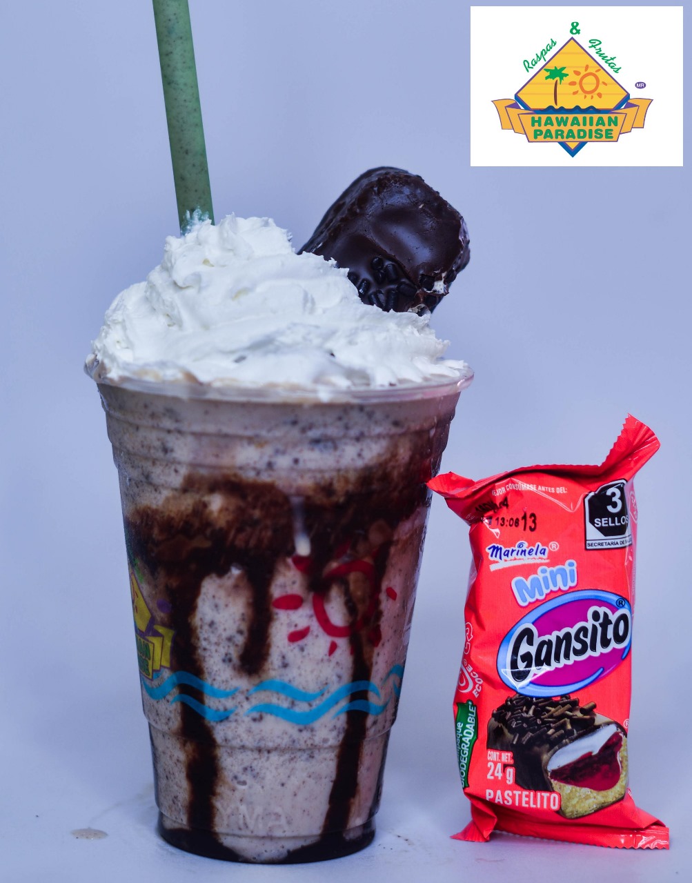 Hielo licuado, Gansitos, chantilly y chocolate liquido
