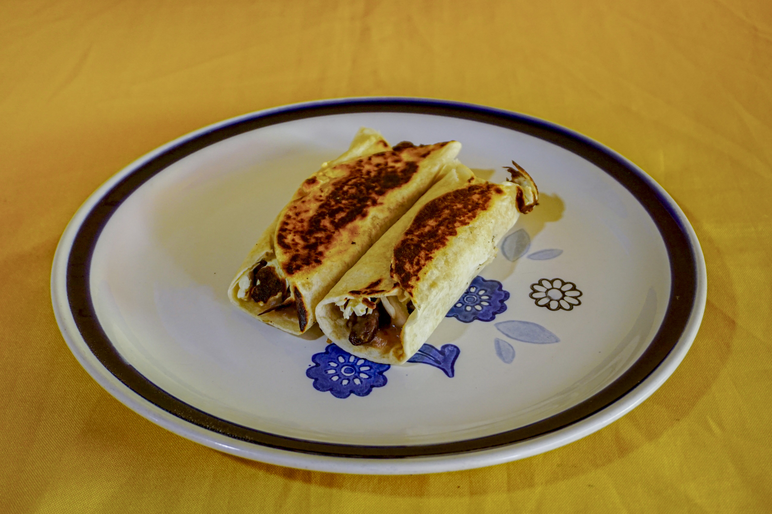 1 Burrito de queso y verduras, acompañado con frijoles.