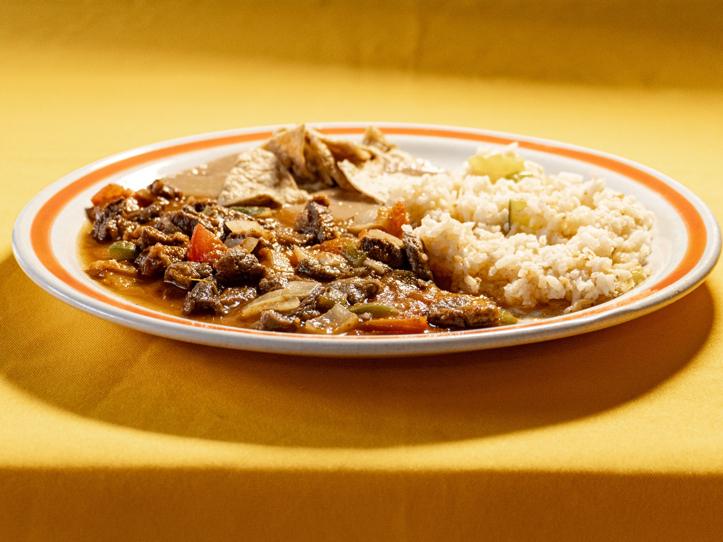 Pechuga y bistec en tiritas, cebolla, chile y tomate rallado. Incluye 1 frappe de frutas.