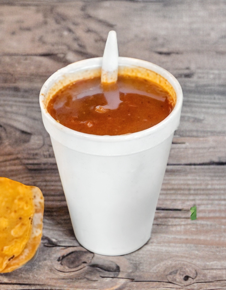 Consome con carne de 200 ml incluye tortillas, verdura y salsa.
