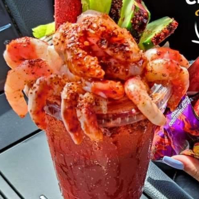 Clamato , cerveza , sales de la casa , limón ,sal y camarones