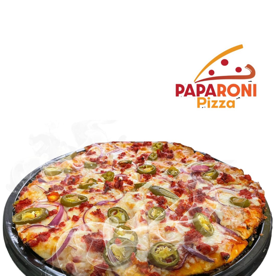 salsa base de la casa queso mozarella , chorizo , jalapeño ,cebolla
