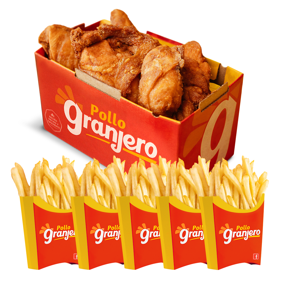 Promo. 8 piezas de pollo + 6 granjeritos + papa fa