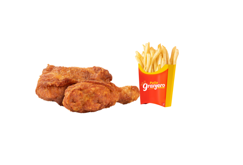 4 Piezas de pollo frito tradicional, crujientes por fuera y jugosas por dentro, con el sazonado perfecto. Acompañado de 2 y 2 papas fritas ¡el combo ideal para compartir o darte un gustito!.