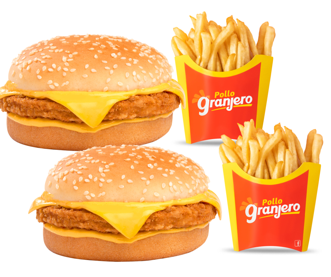 ¡El sabor que siempre se antoja! Disfruta 2 hamburguesas de pollo con queso + 2 papas pequeñas