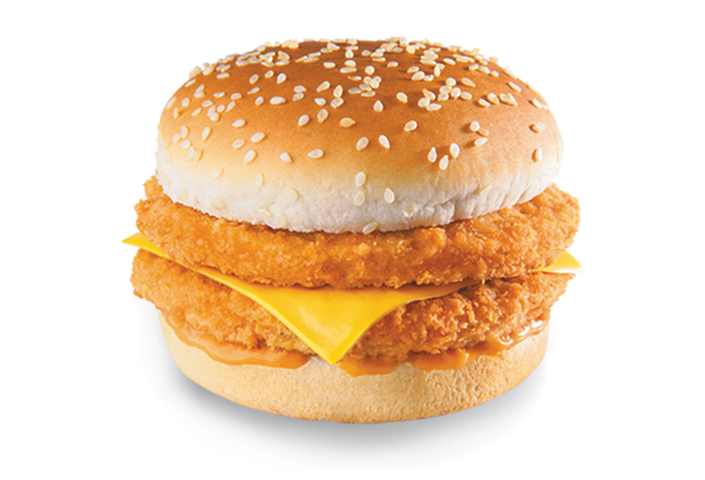 Disfruta una deliciosa hamburguesa con doble filete de pollo empanizado, crujiente y jugoso, con queso derretido, todo en un pan suave y calientito.