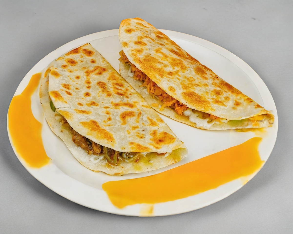 Quesadilla rellena de carne y queso fundido.