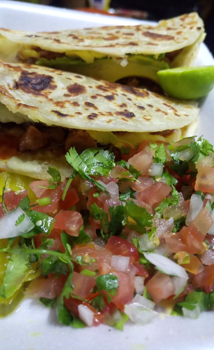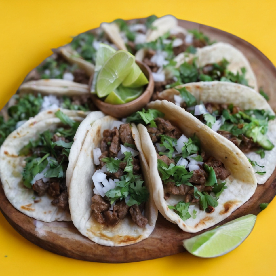 Incluye salsas, tortillas, cebolla, cilantro y limón.