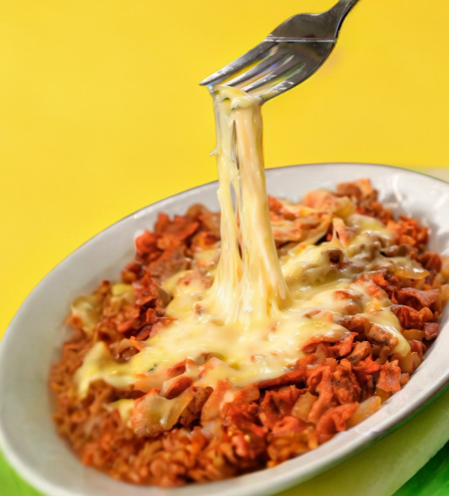 Queso fundido con proteína, exquisita que se derrite en tu boca.
