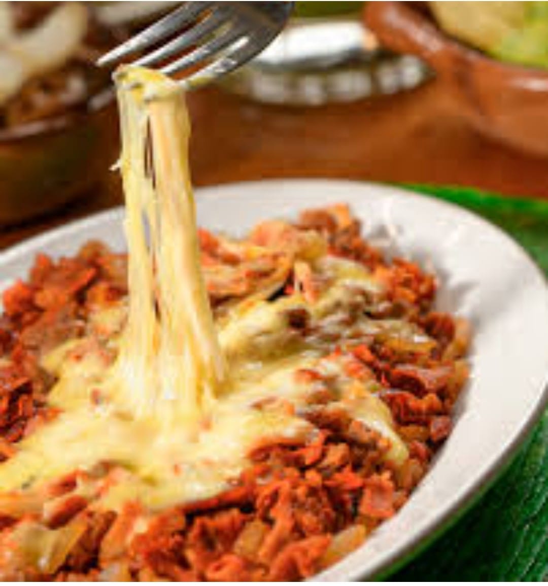 Queso fundido con champiñón, exquisita que se derrite en tu boca.
