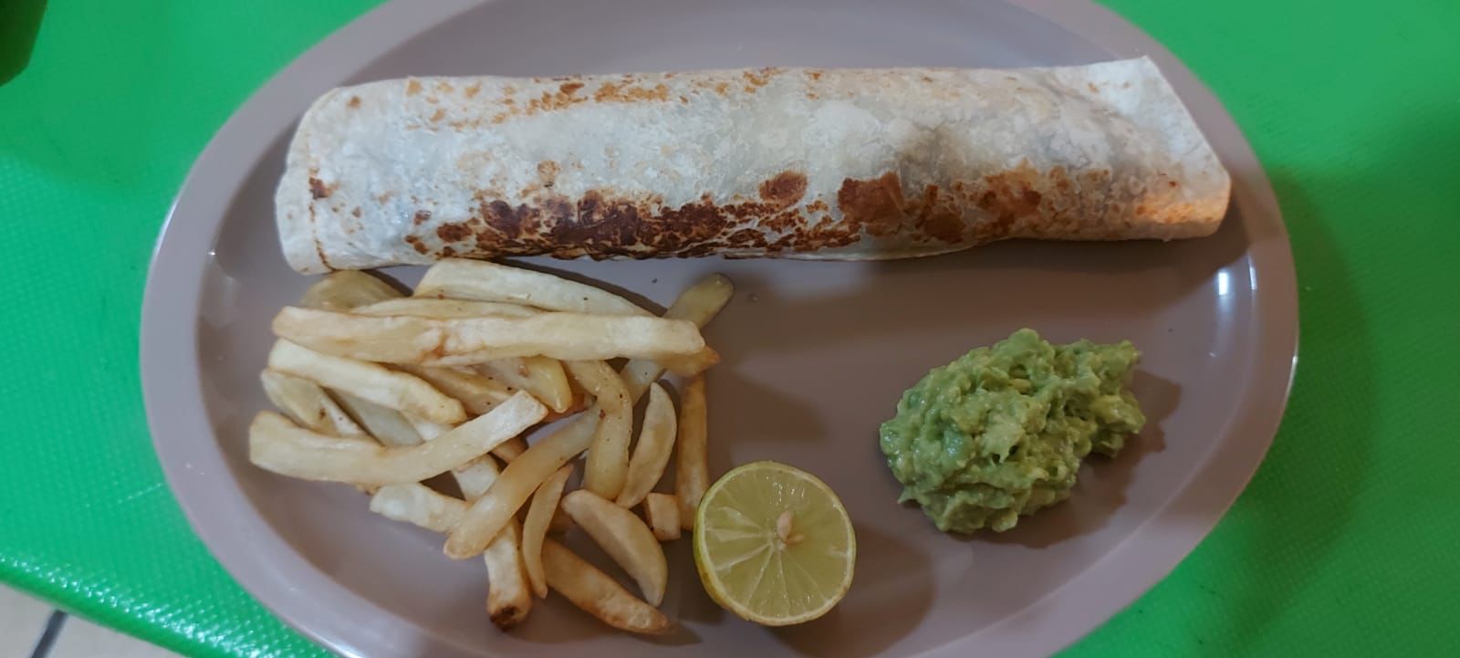 Burrito Especial con papas fritas.