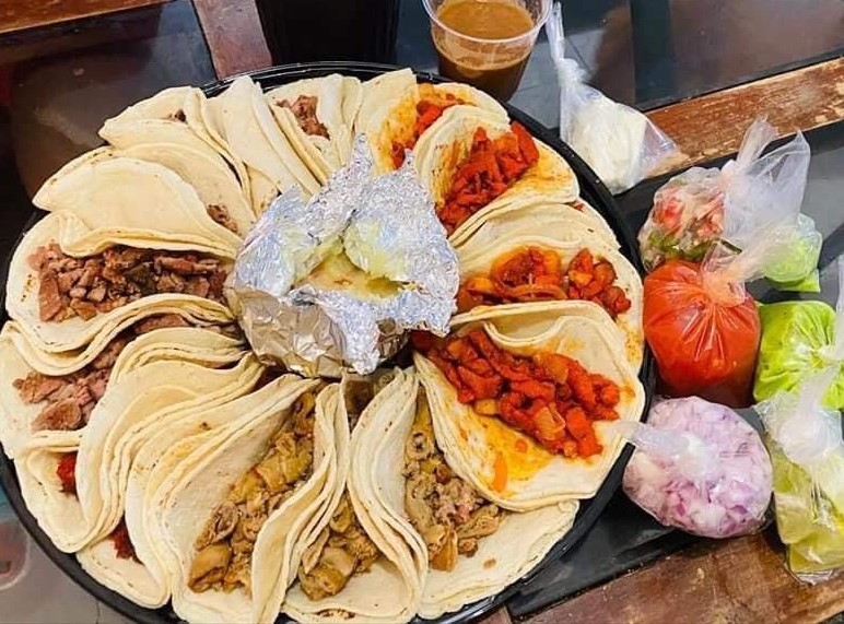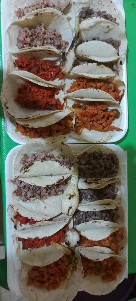 Disfruta de 6 tacos de asada, 6 de pastor, 4 de longaniza y 4 de chorizo en tortillas de mano, acompañados de salsa verde, pico de gallo y limones..de regalo solo hoy 2 cervezas corona lata,
