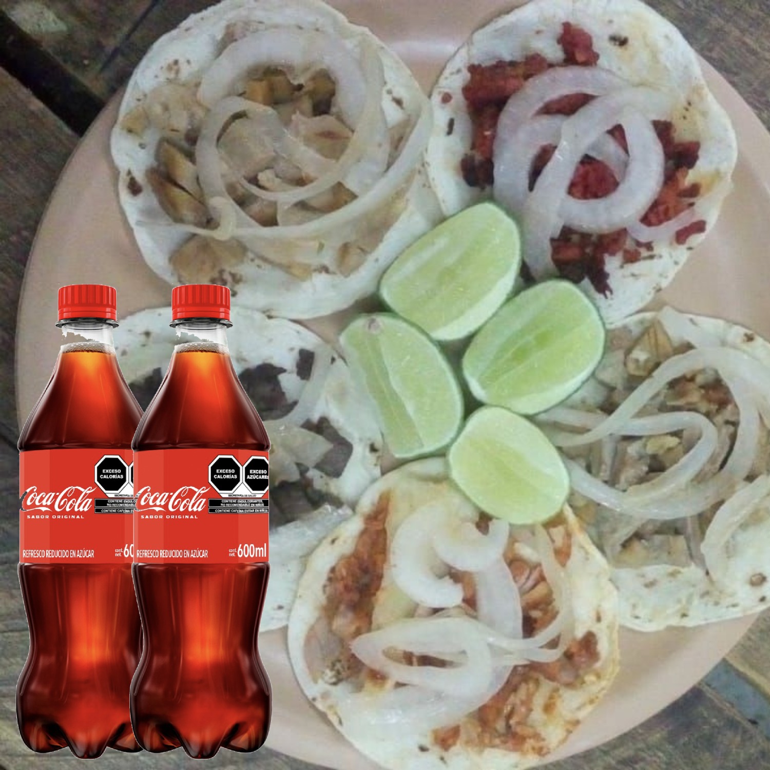 Coca Cola 600 ml*1 + Taco de Pastor*4 + Taco de carne asada*2