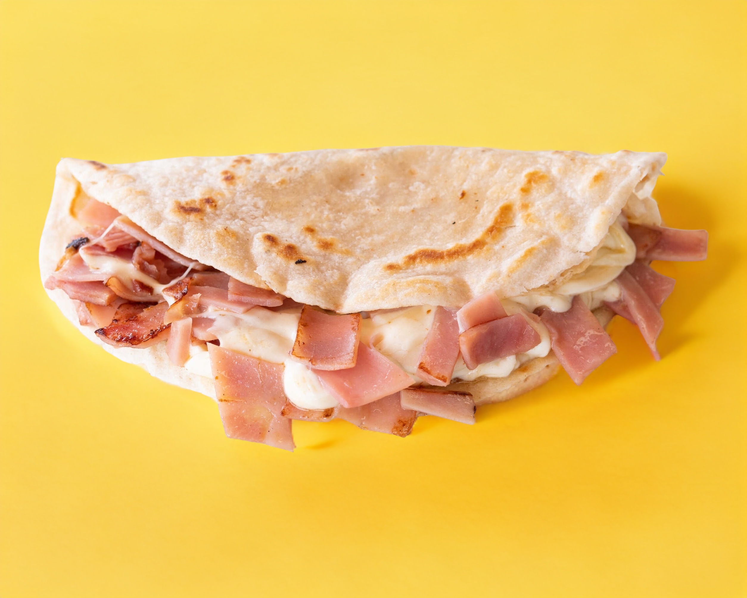 Tortilla de harina suave rellena de jamón dorado y quesillo fresco. Precios incluyen IVA.