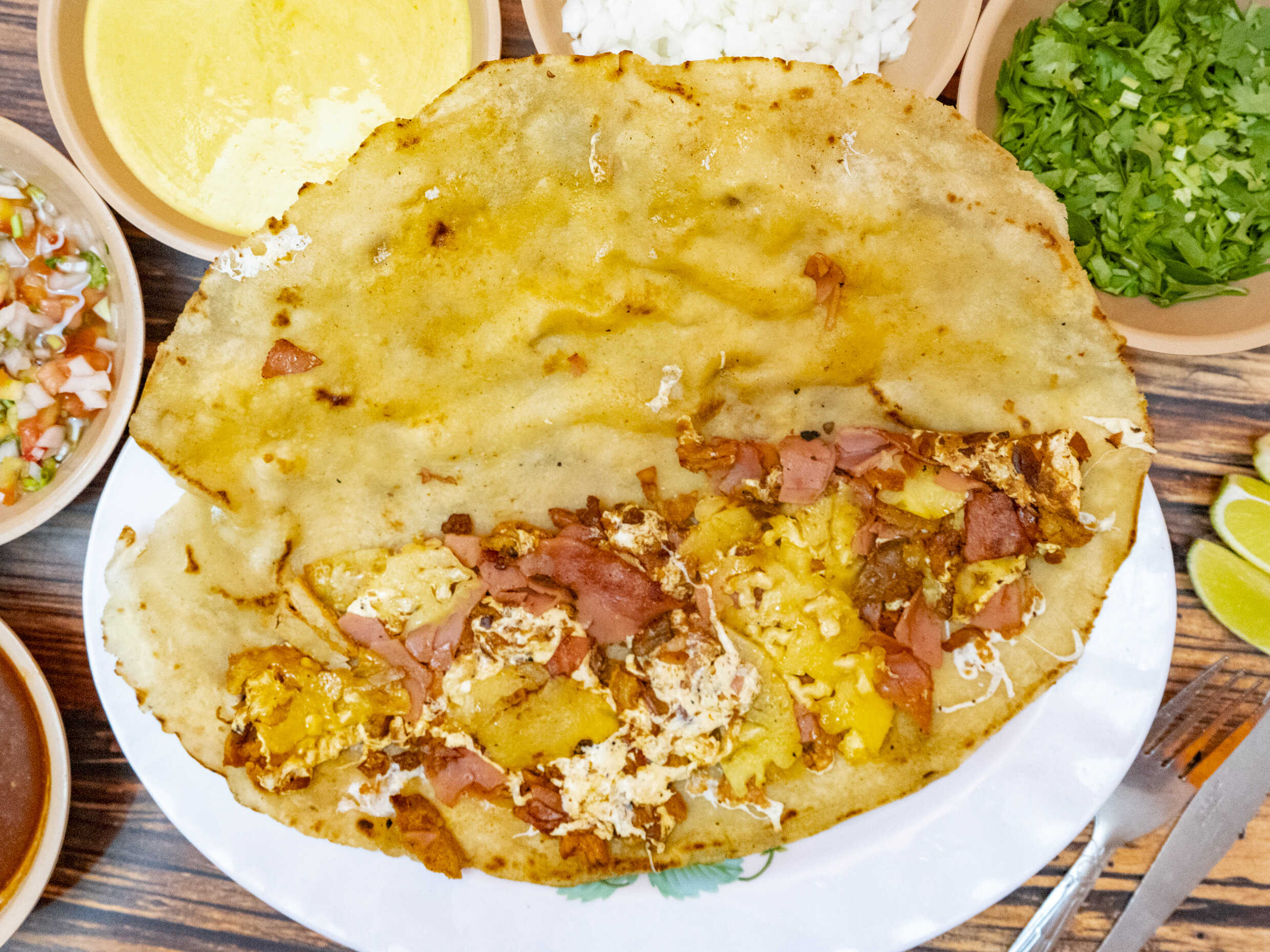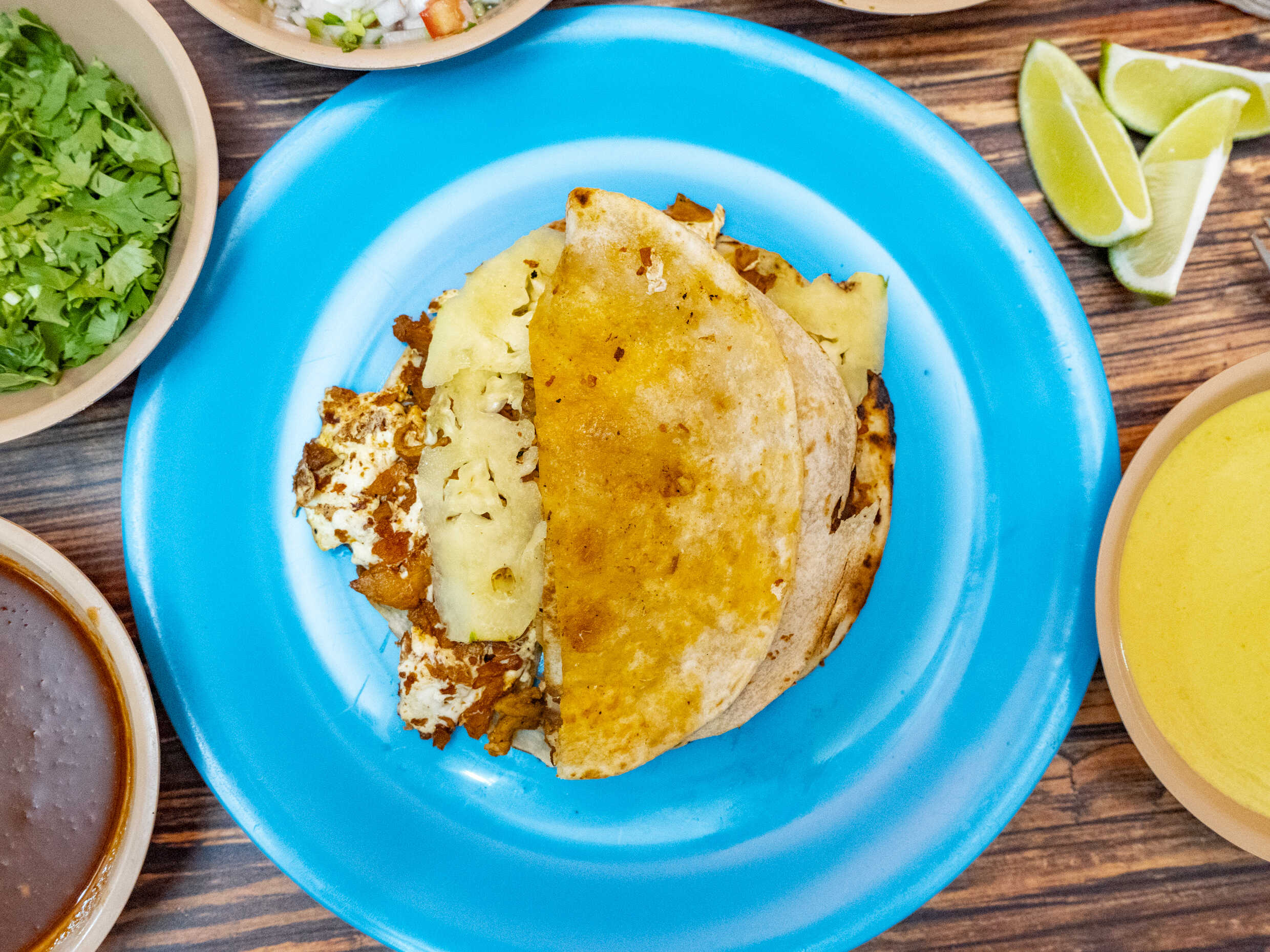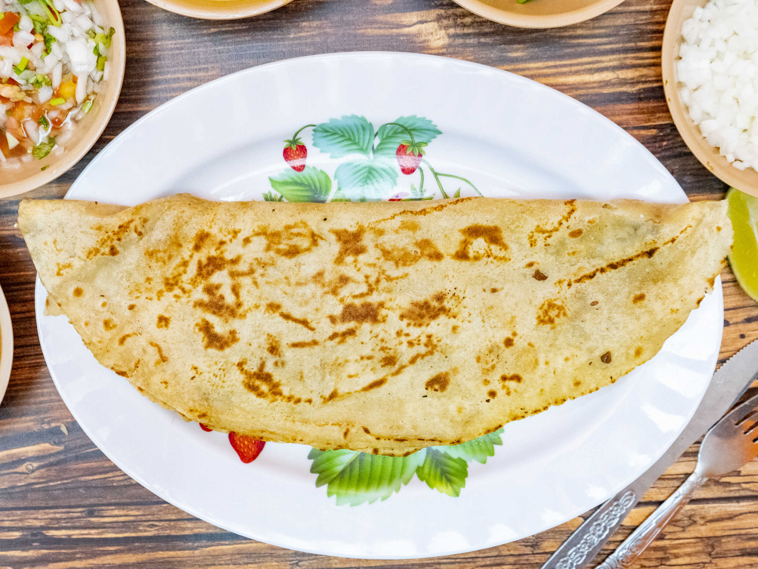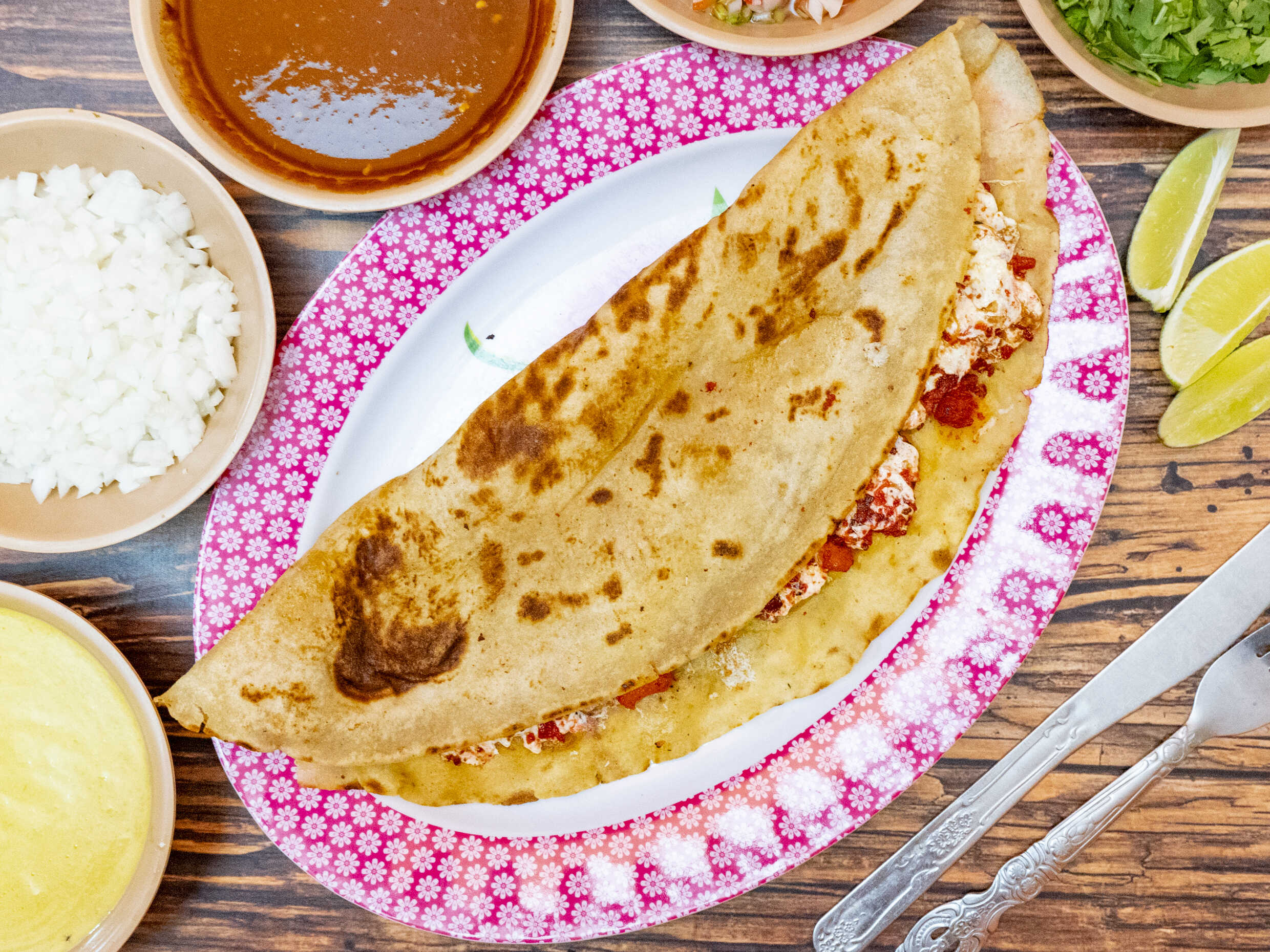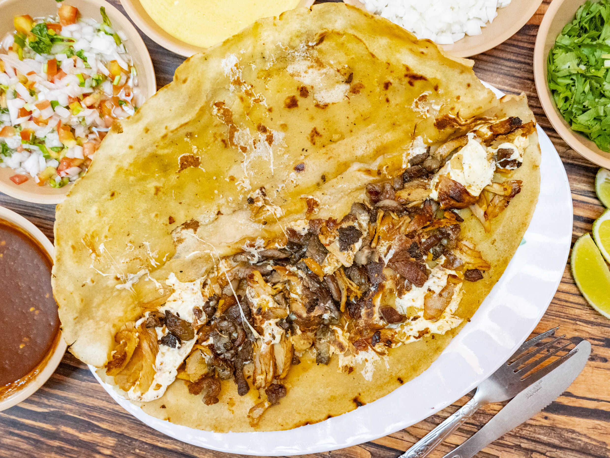 Tortilla elaborada al momento,+carne al pastor+quesillo , quesadillas tradicional ,grandes