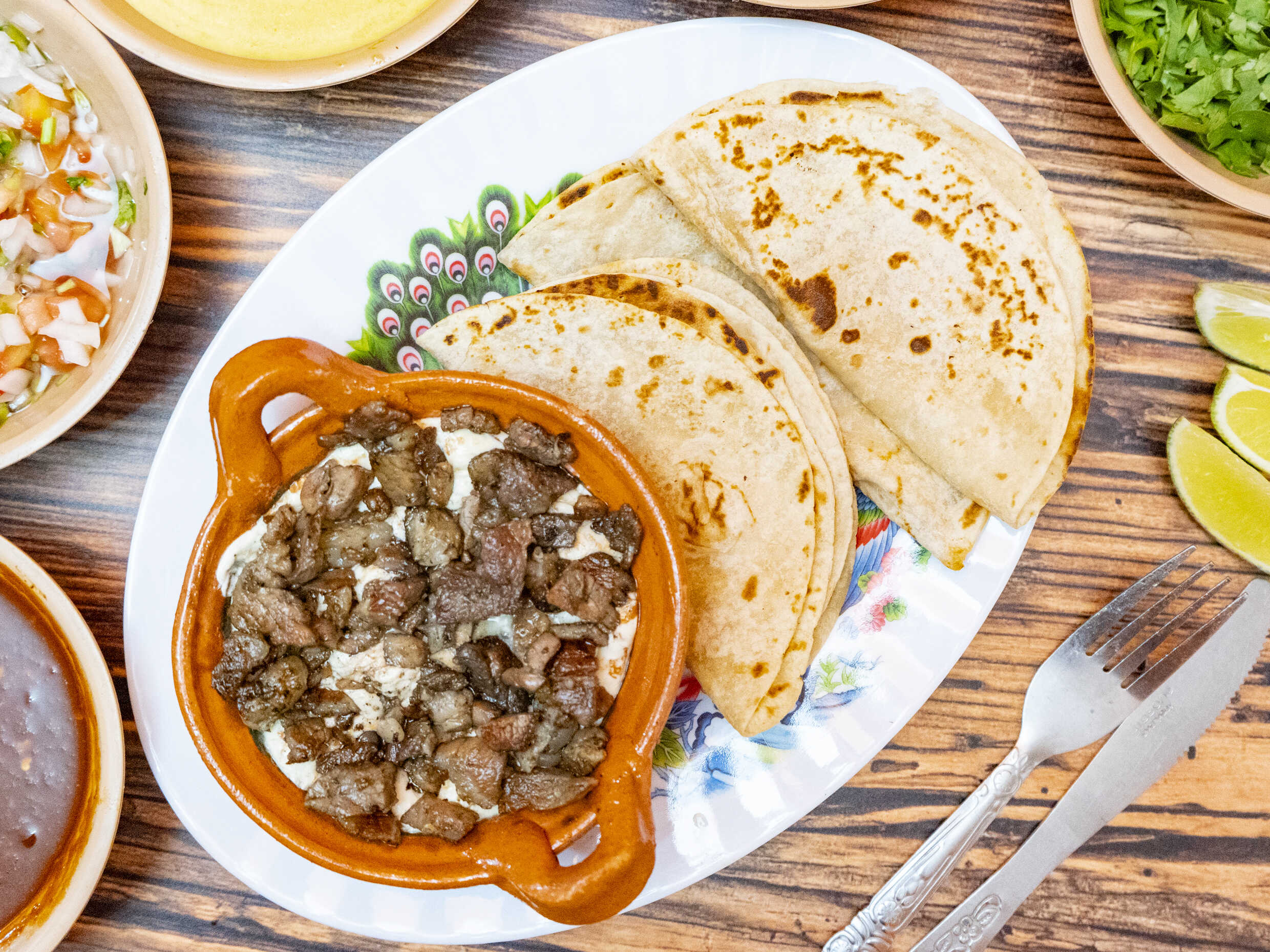 Deliciosa carne asada al carbón,en una tortilla grande elaborada al momento