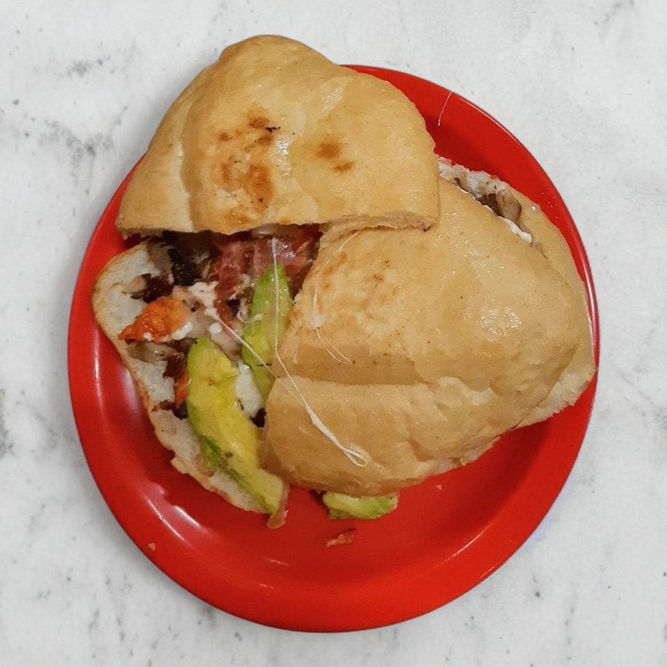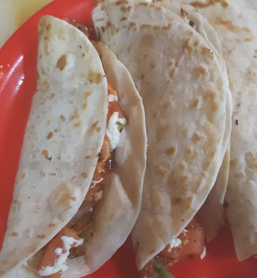 Tortilla de harina, salsa verde, queso Oaxaca ( quesillo) , y tu elijes tu proteína.