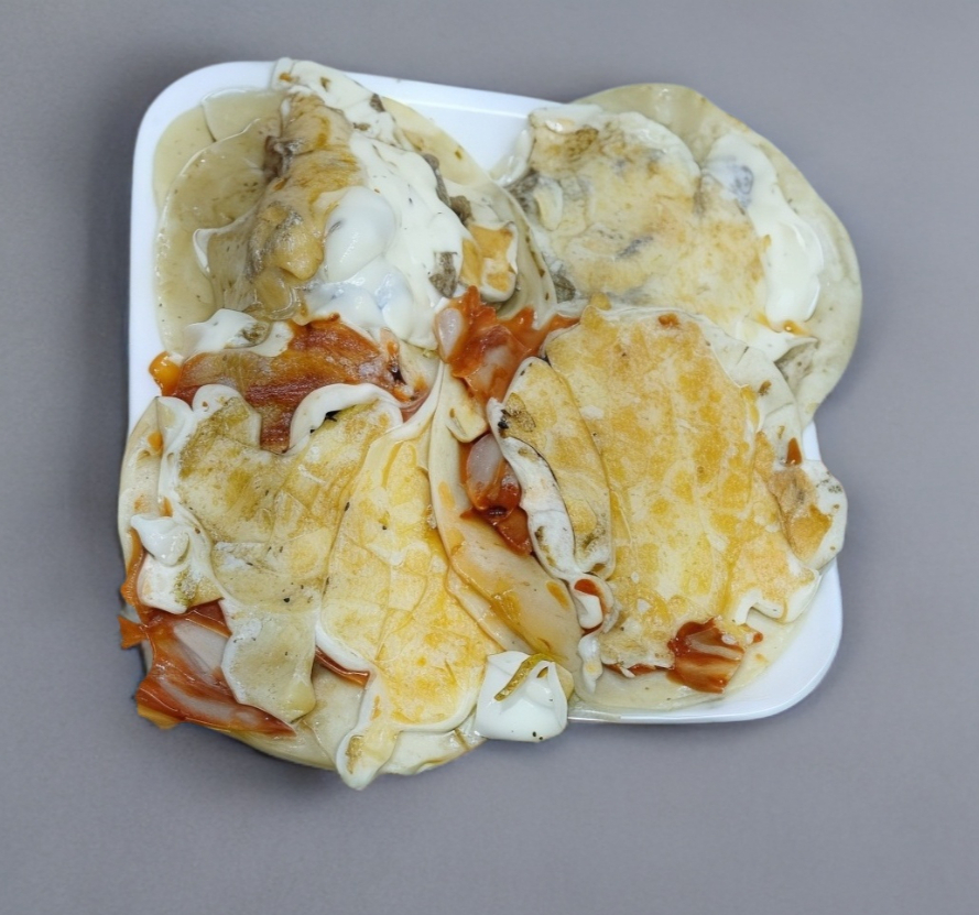 1 Carne a elegir de: pastor, chuleta o chorizo, queso y tortilla de harina.