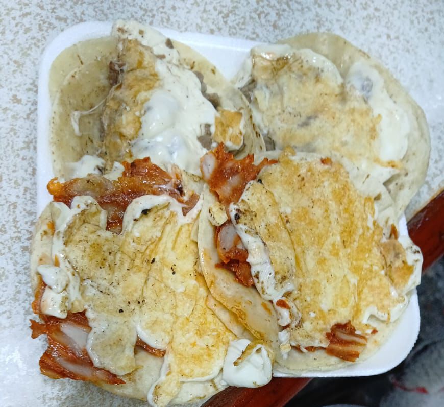 Tacos al pastor 2x1promocion en la compra de un taco te regalamos uno mas, tortilla de harina con 18 g de carne, cada unidad