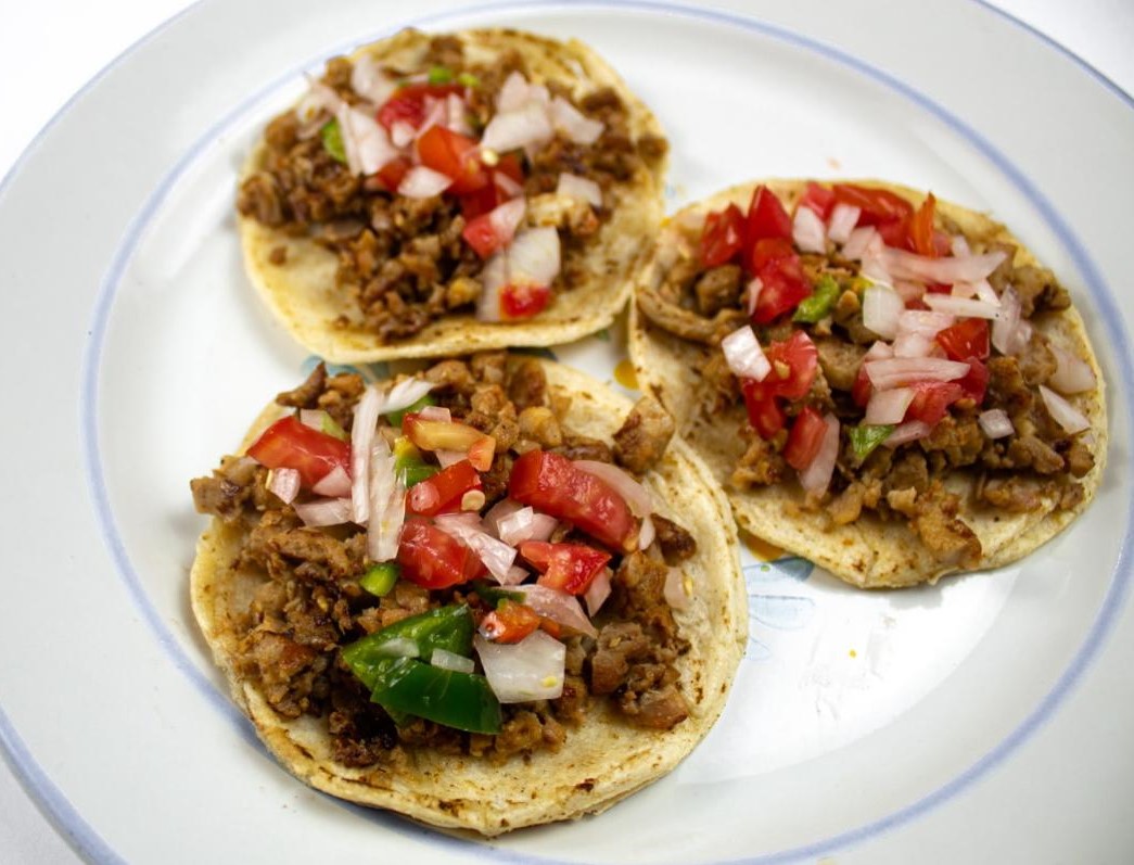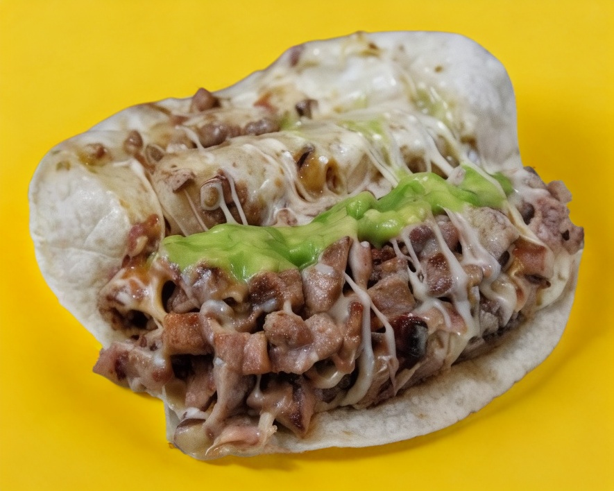 1 Carne a elegir de: pastor, chuleta o chorizo, queso y tortilla de harina.
