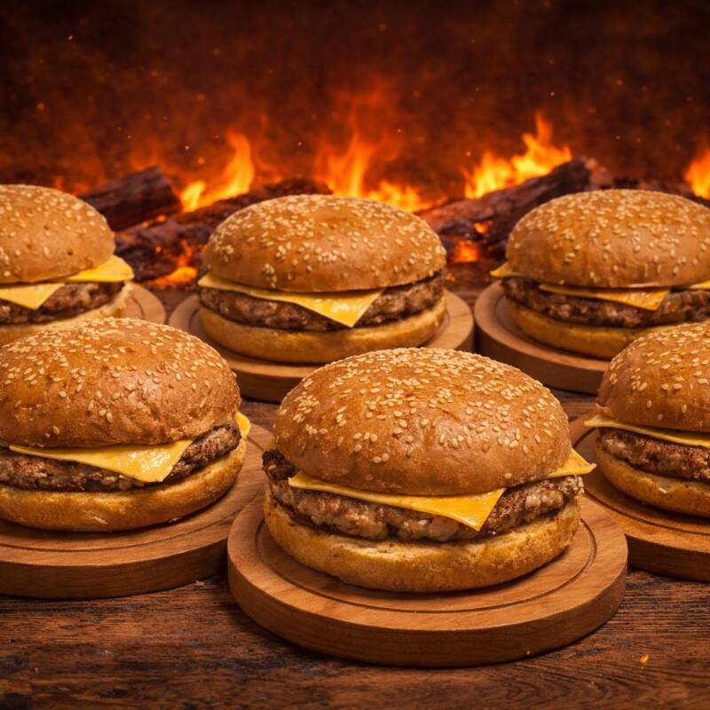 Pan artesanal, carne 100% res, queso chihuahua, queso amarillo gratinado, cebolla morada, lechuga, tomate, tocino, aros de cebolla empanizados bañados en aderezo cremoso de chipotle.