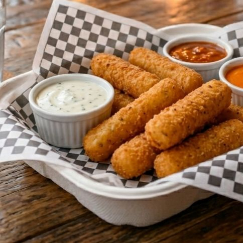 7 Deliciosos dedos de queso rellenos de Mozzarella, acompañado de su aderzo Ranch