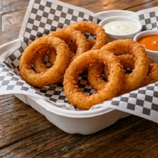 7 deliciosos aros de cebolla, acompañado de su aderzo Ranch