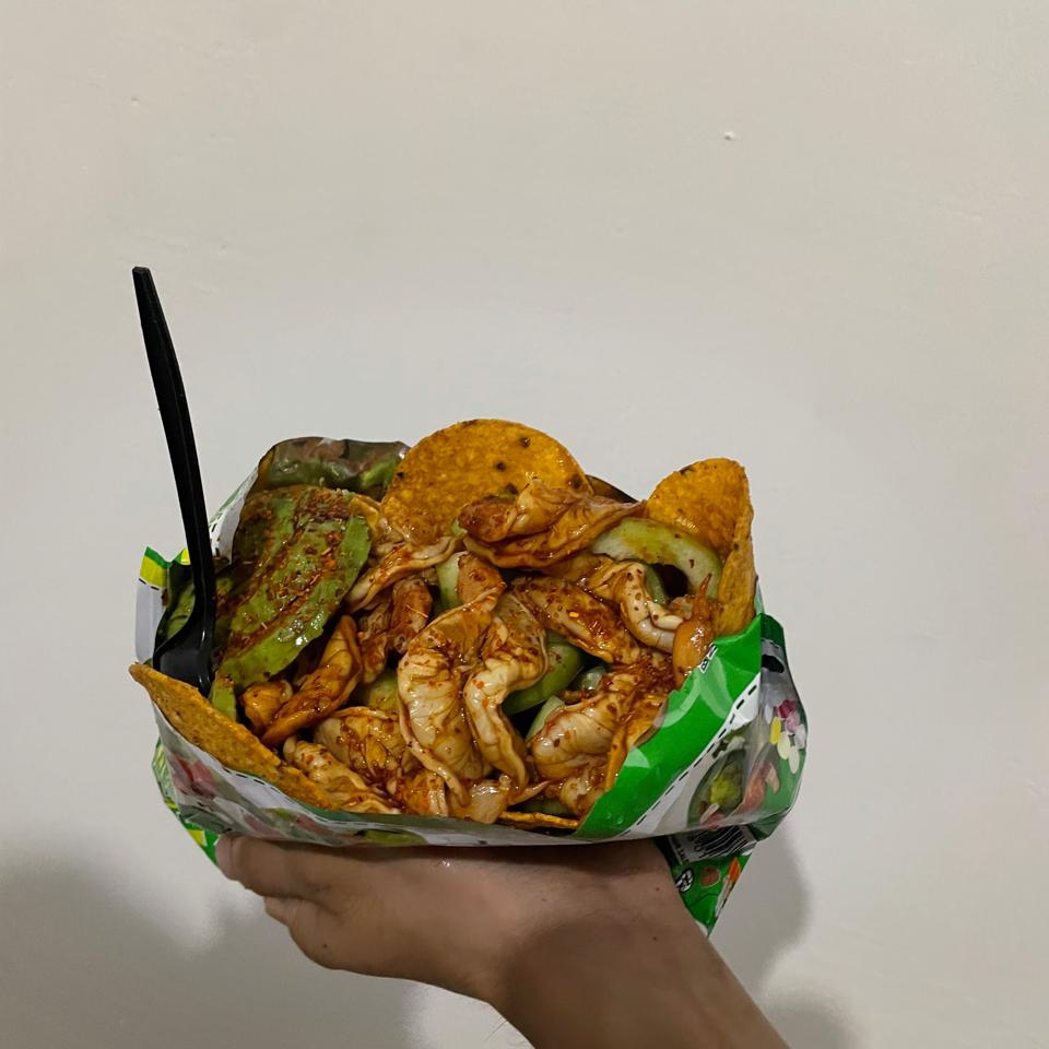 Tostadas crujientes con camarón en trozos, pepino, tomate y cebolla fresca, bañados con nuestra salsa especial de la casa.