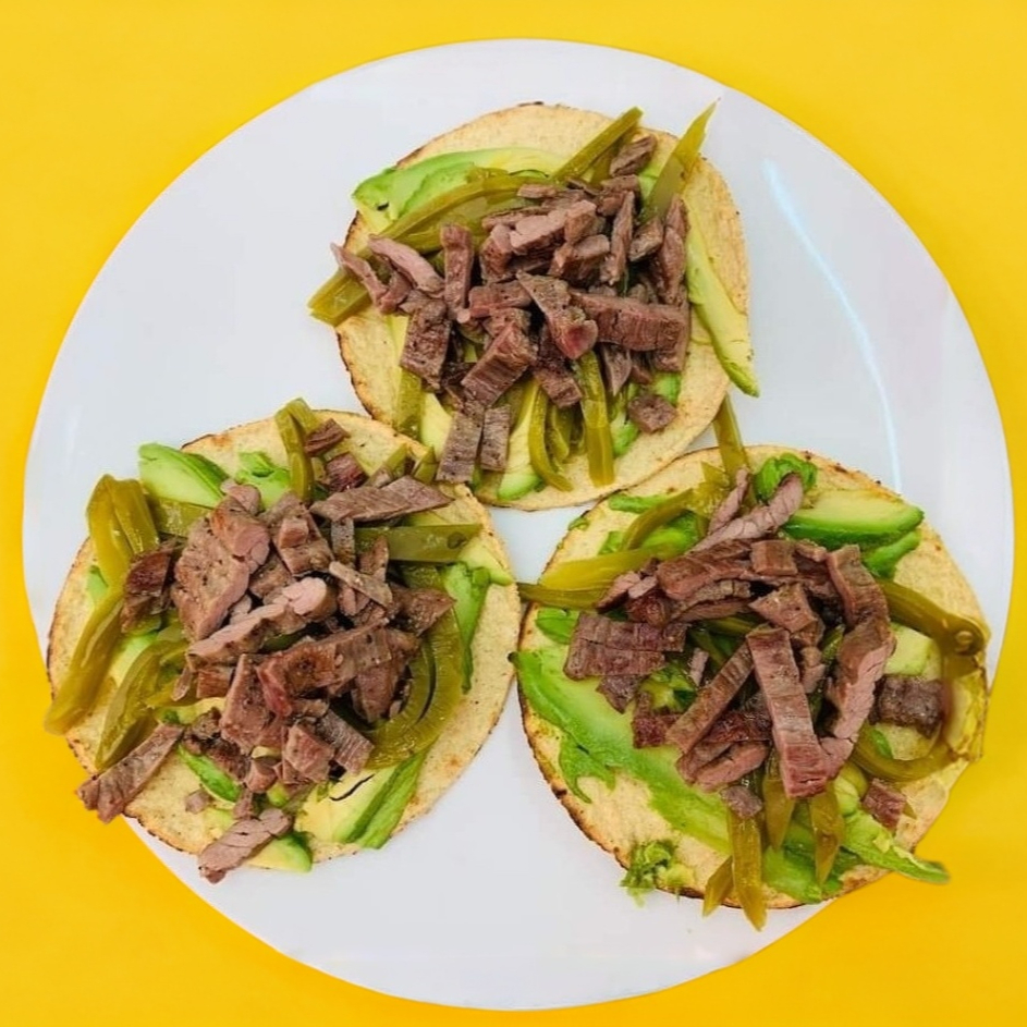 Tostadas de Arrachera con Nopal y Aguacate