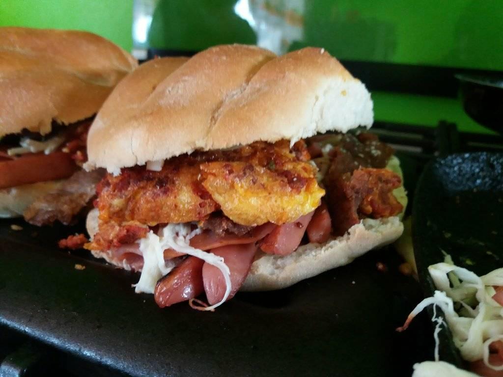 Deliciosa combinación de milanesa, salchicha, quesillo. Incluye aguacate, jitomate, cebolla y mayonesa.