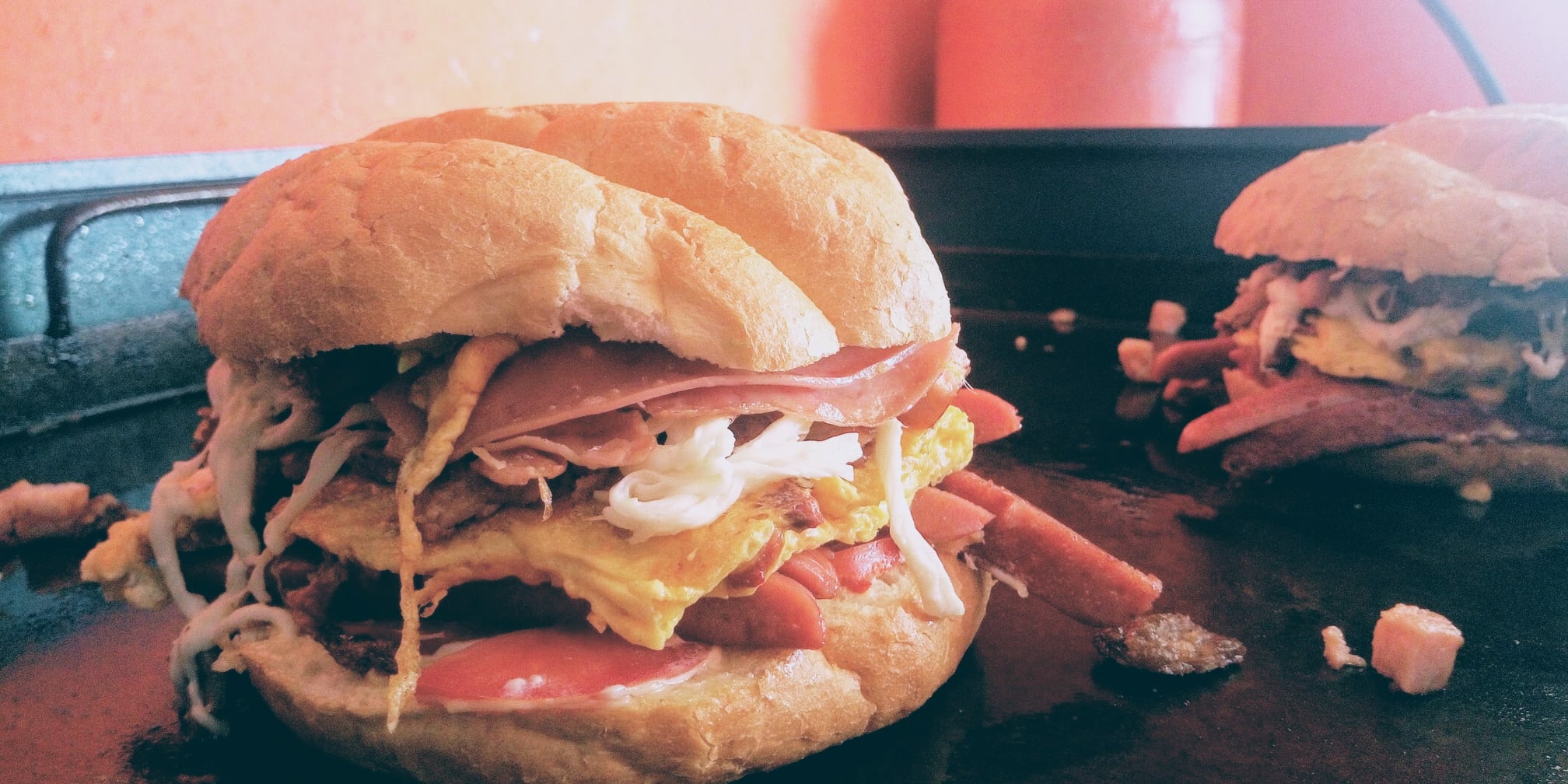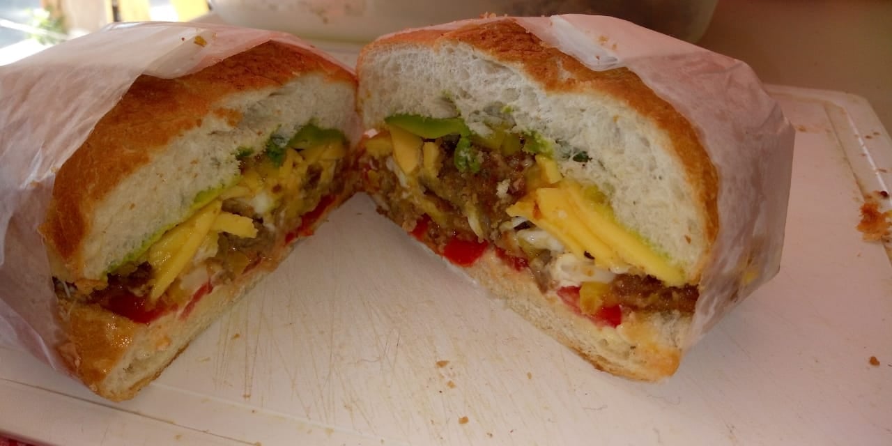 Deliciosa combinación de huevo, jamón, pierna, quesillo. Incluye aguacate, jitomate, cebolla y mayonesa.