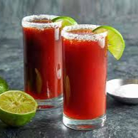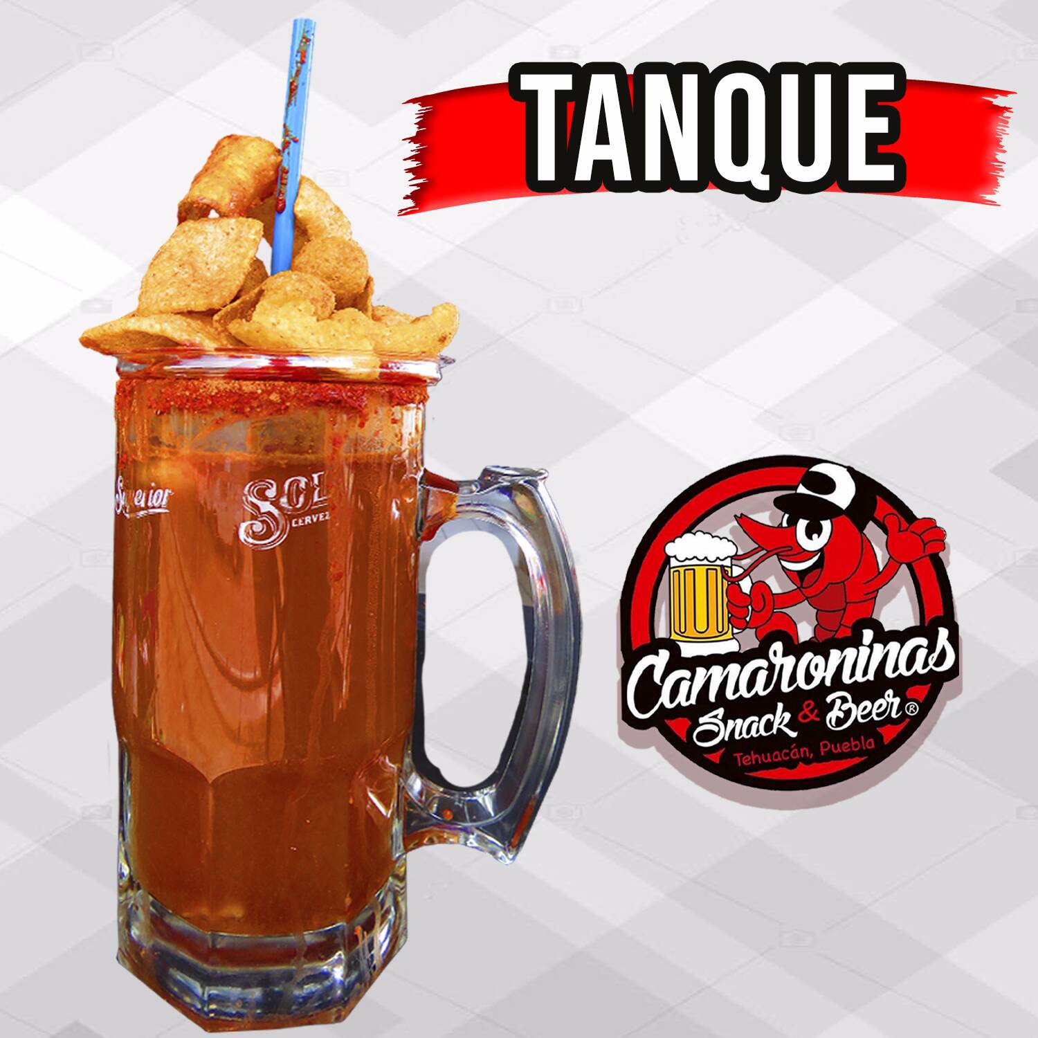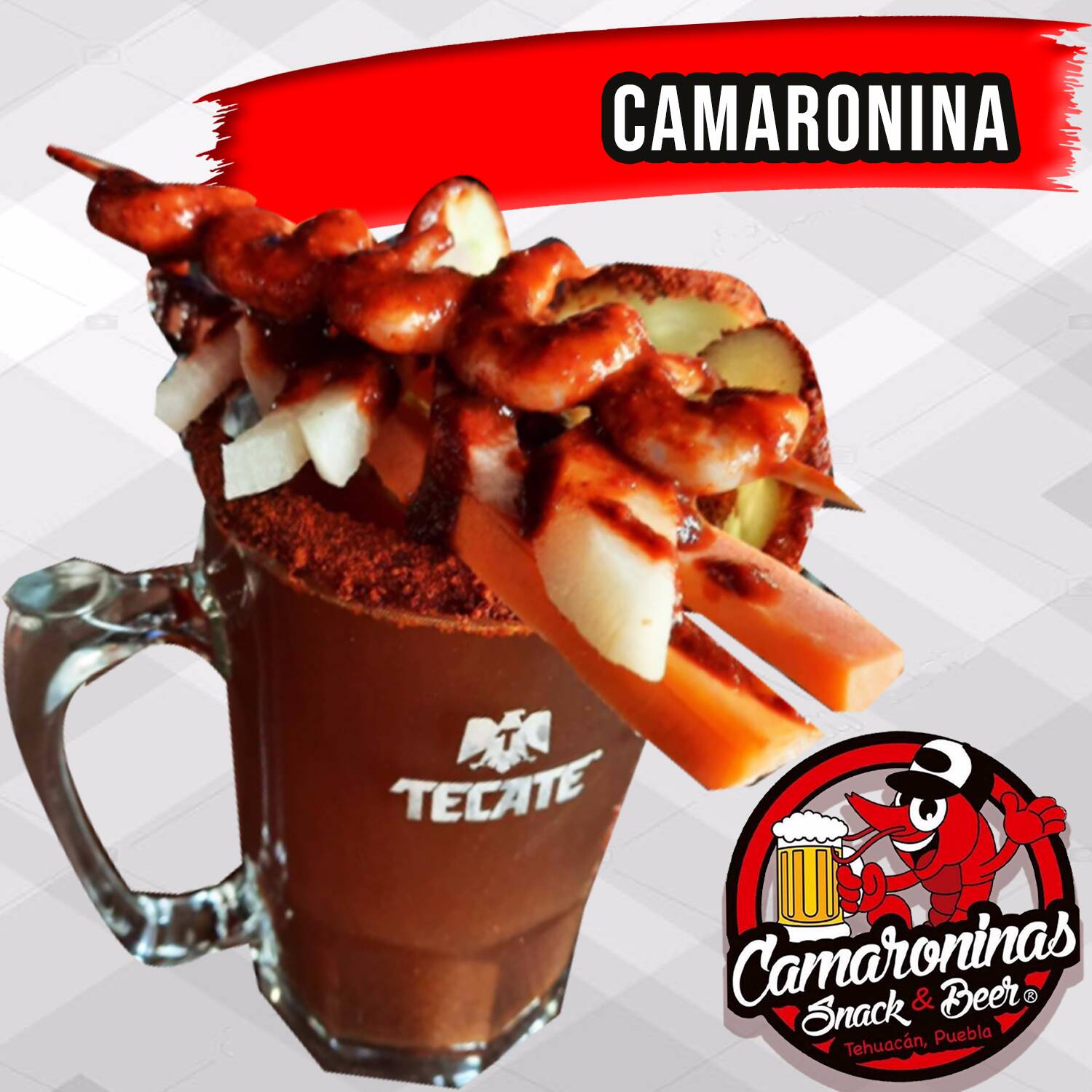 Cerveza, camarones, salsa de la casa, jicama, pepino y zanahoria