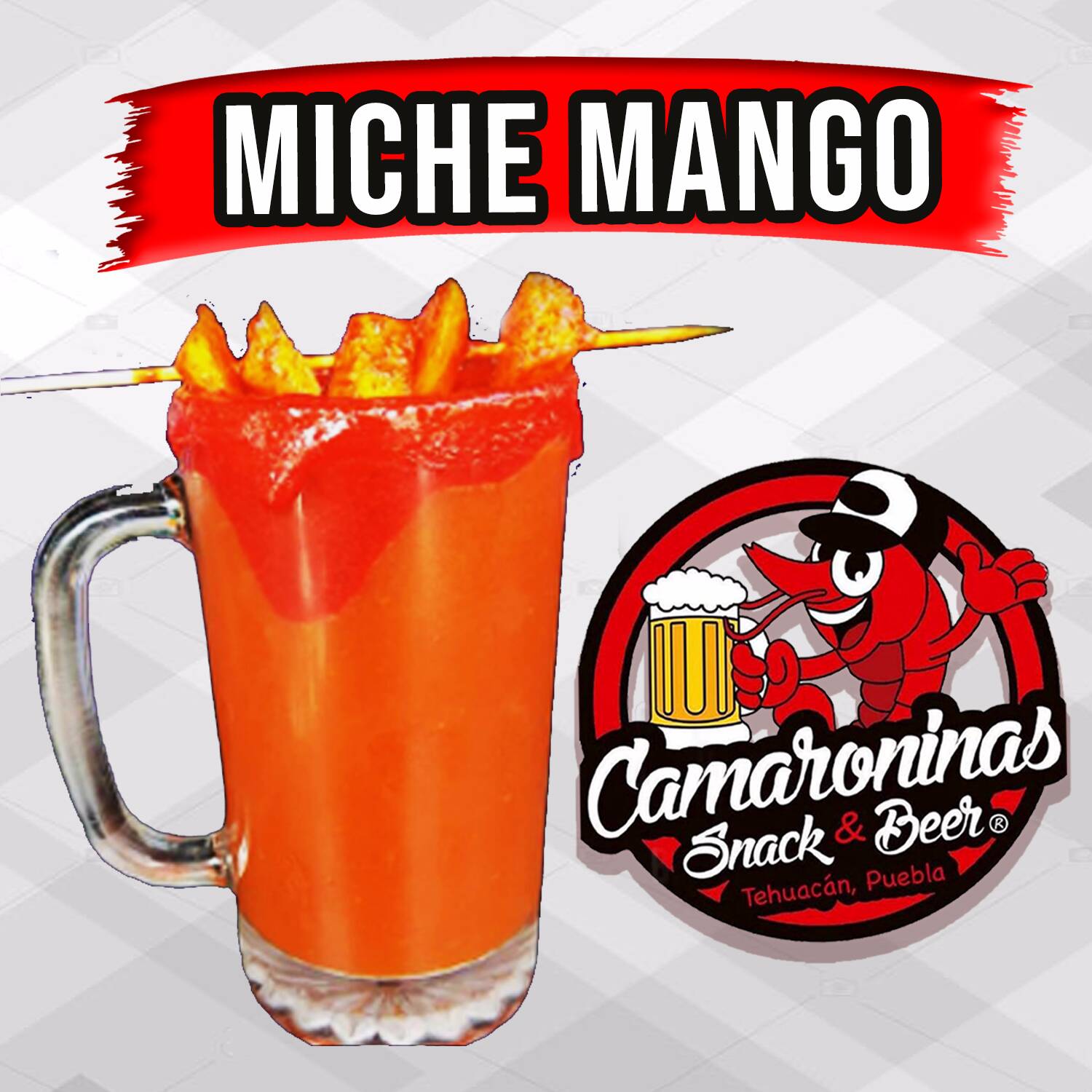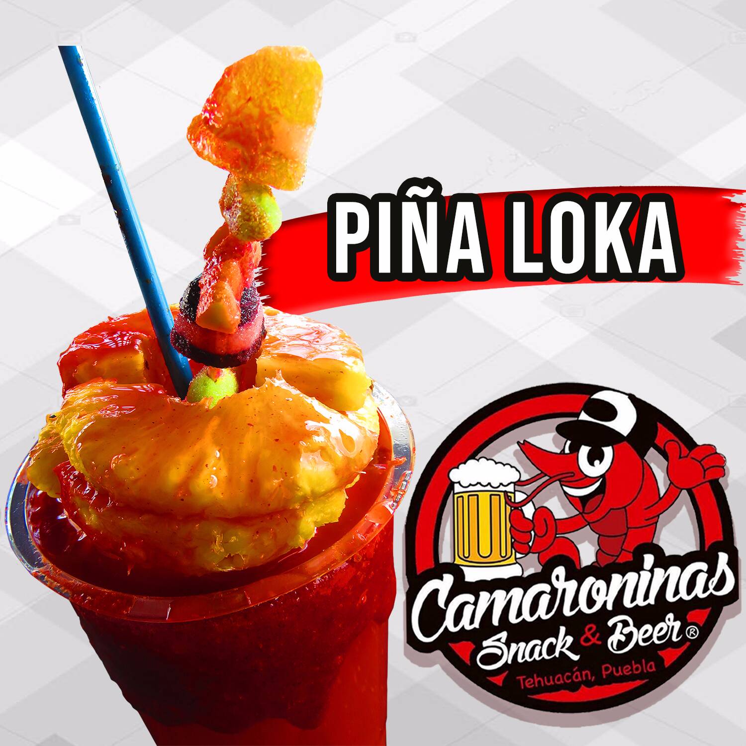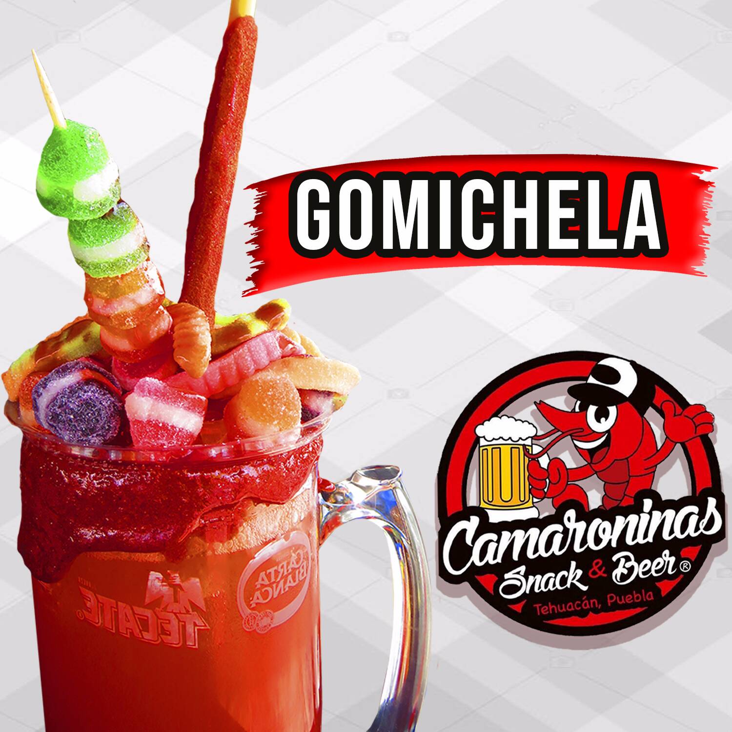Jugo de limón, licor curado, bebida energizaté, escarchado de Miguelito, cerveza, camarones, gomitas, pepino y chamoy