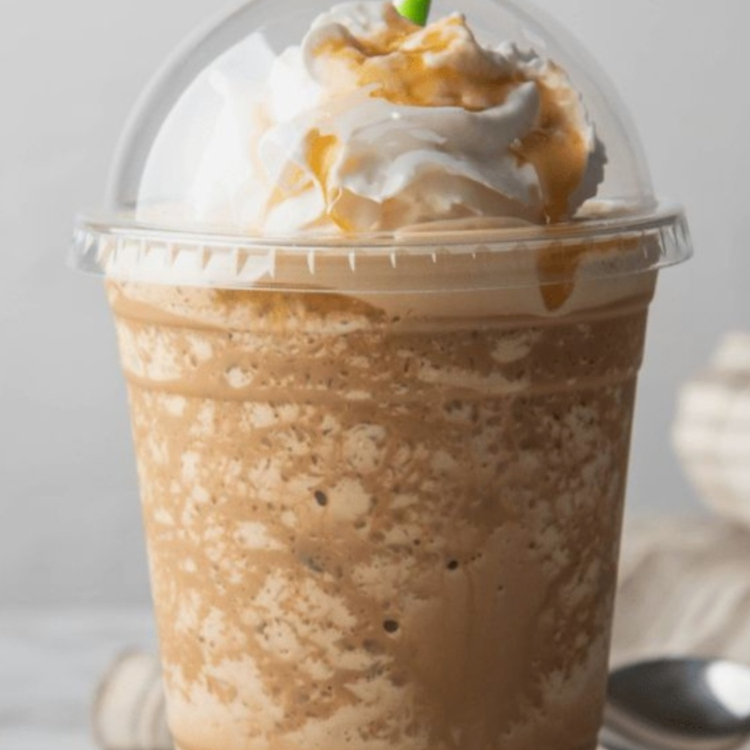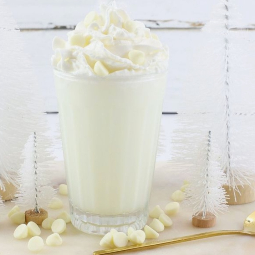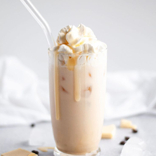 Bebida licuada a base de café espresso, leche, hielo y chocolate blanco