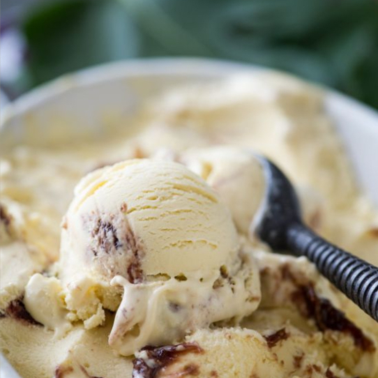 Gelato Gourmet a base de leche, acompañado de trozos de higo, combinacion perfecta, incluye cono de vainilla