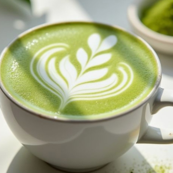 Bebida caliente a base de té verde en polvo, rica en antioxidantes