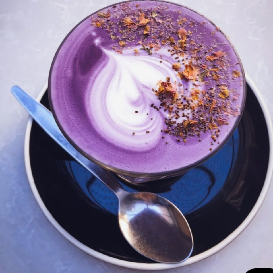 Bebida Helada, cremosa de color morado característico a base de polvo de taro