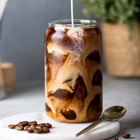 BEBIDA REFRESCANTE ELABODA CON CAFE MAS LECHE FRIA Y HIELOS