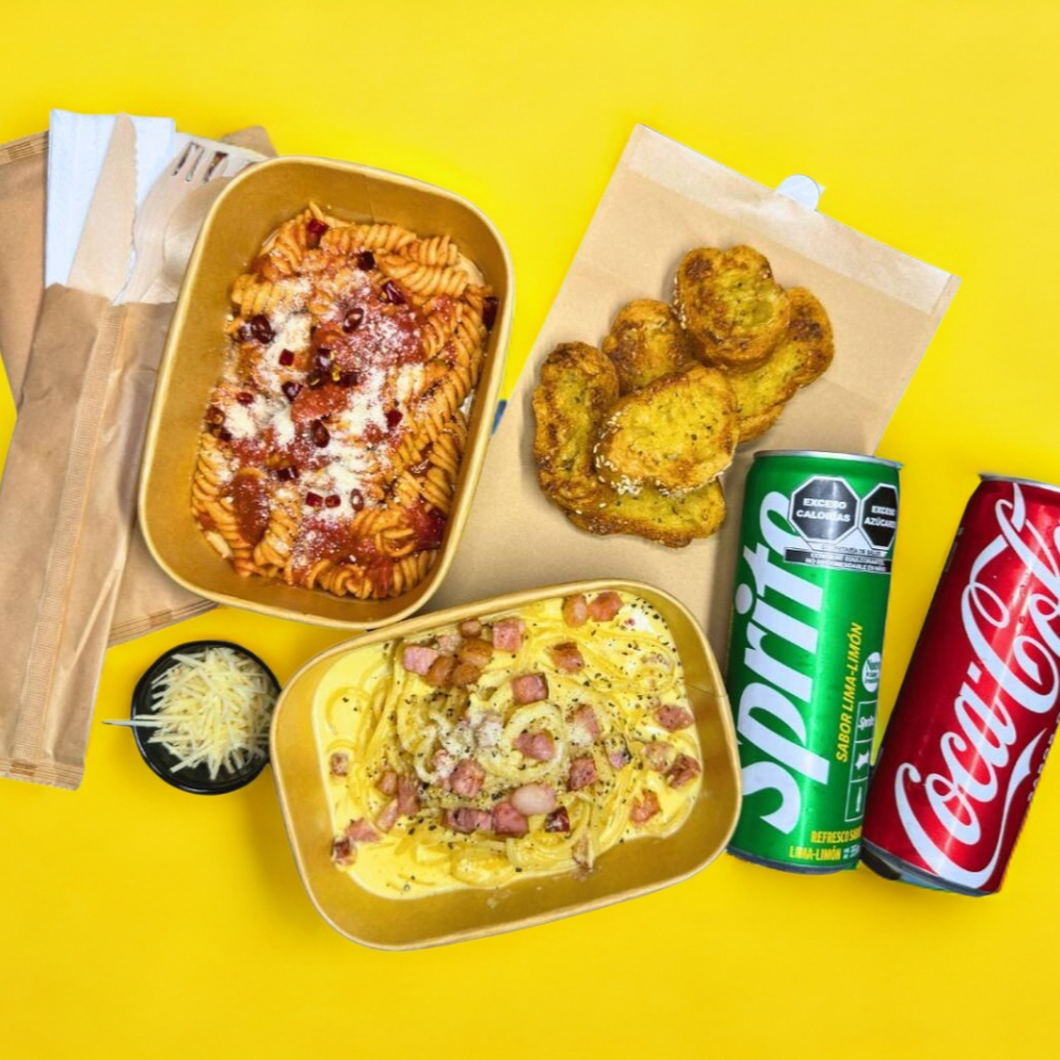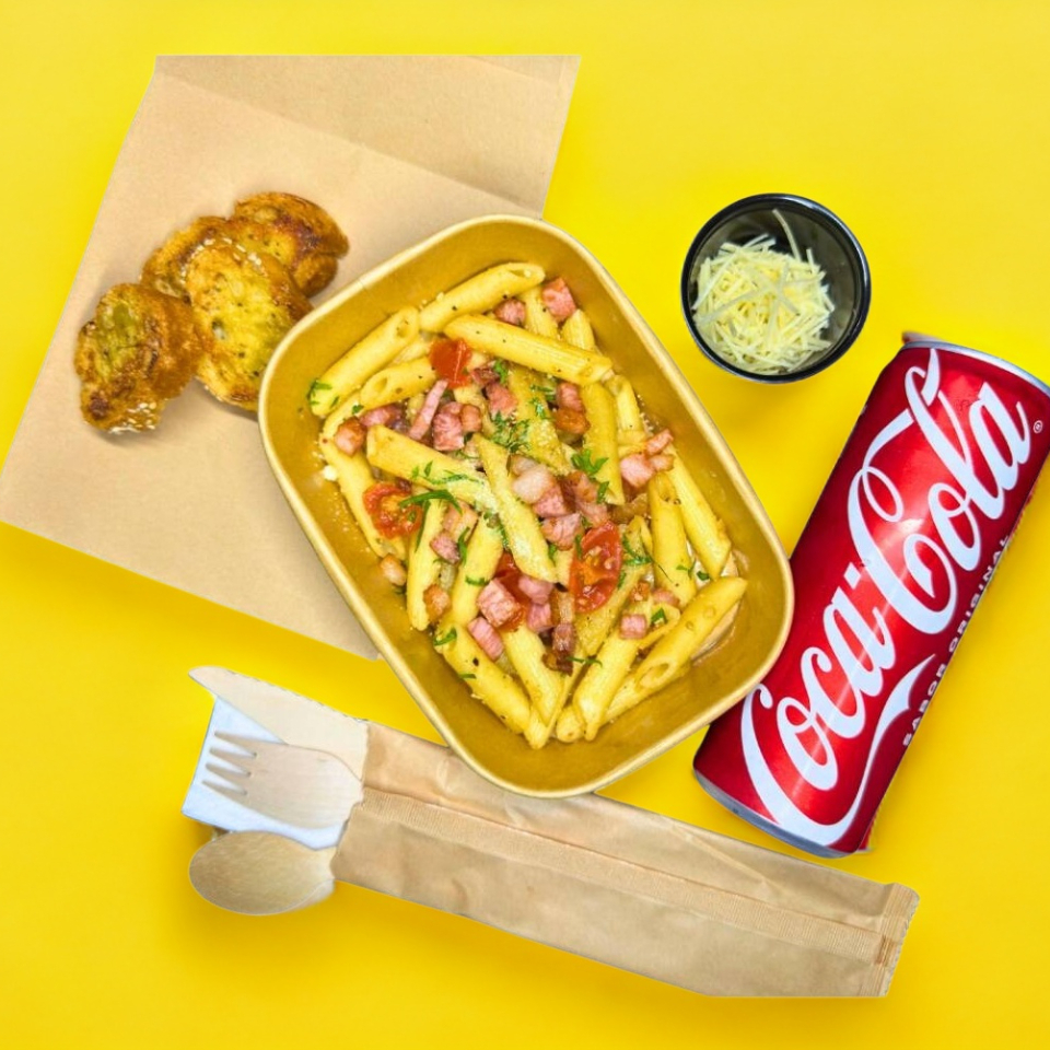 Spaghetti Alla Carbonara*1 + Pasta All’Arrabbiata*1 + Coca Cola*2