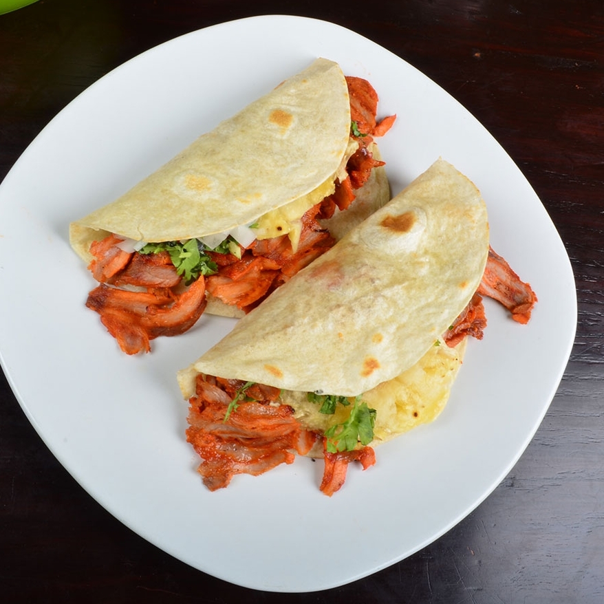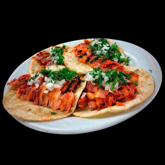5 tacos de 2 tortillas de maiz por taco, carne, cebolla, cilantro,piña