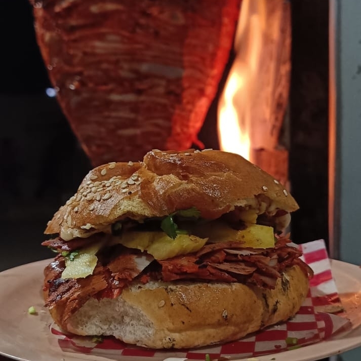 carne arabe y carne al pastor, jamon, queso, jamon, aguacate, salchicha