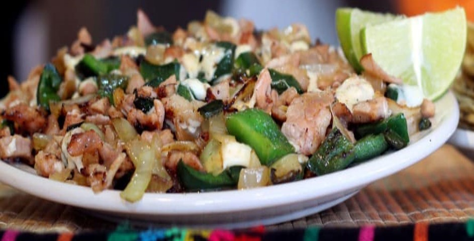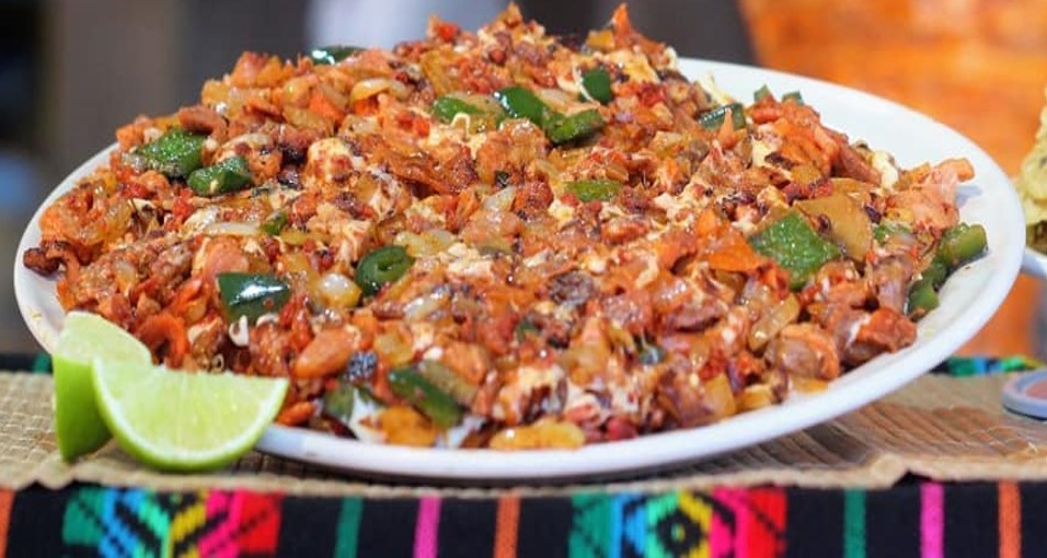 300 gr. Bistec de pco, chorizo, tocino, jamón, cebolla, poblano y queso.
